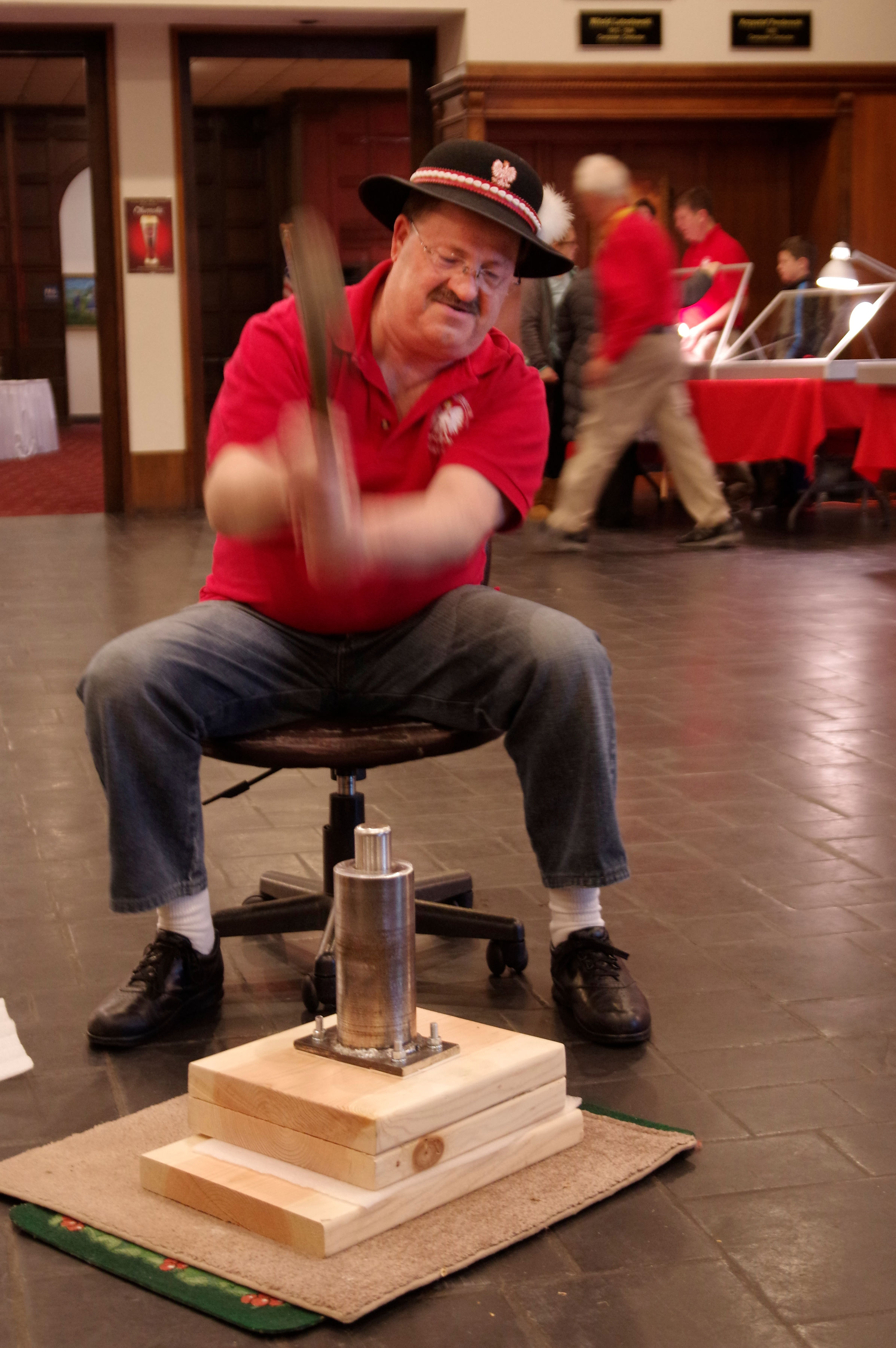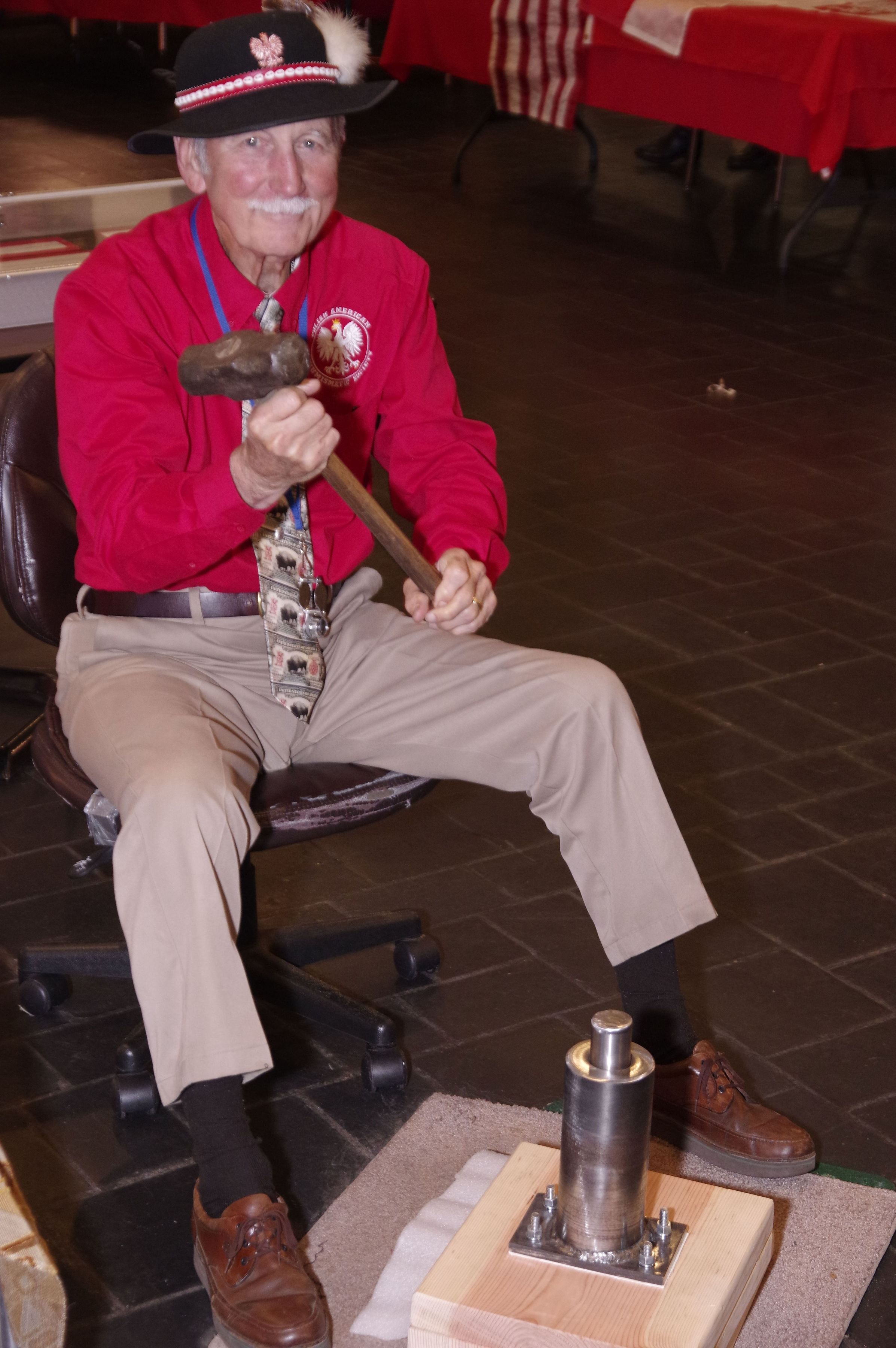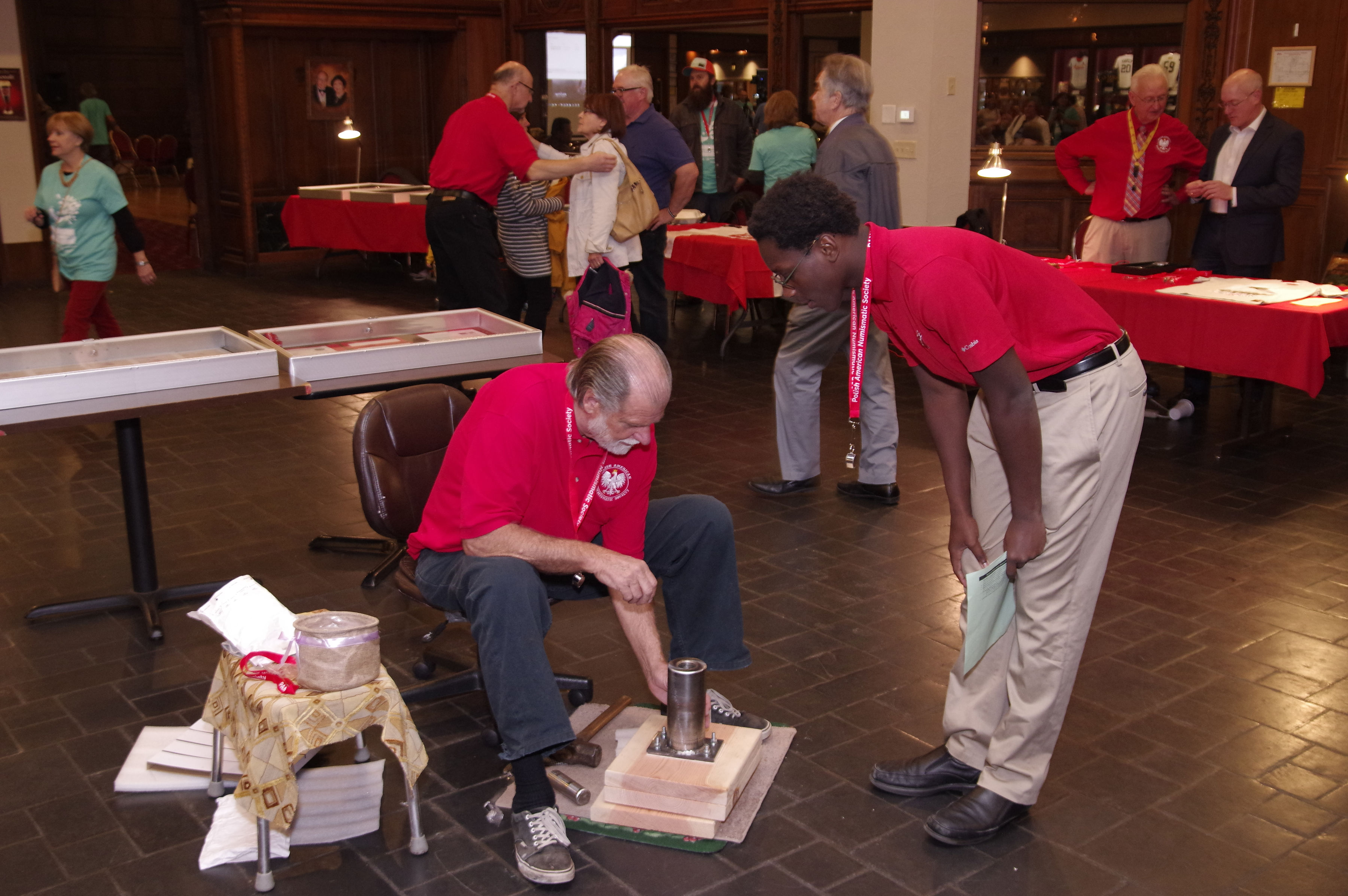 At one point I counted about 24 children standing around the PANS Display of how medal coins were struck in the 13th. Century Poland. Mr. Joseph Beaupied and Mr. Eric Lorentzen did a great job of explaining and showing the children the process of striking coins with medal dies and a heavy hammer.