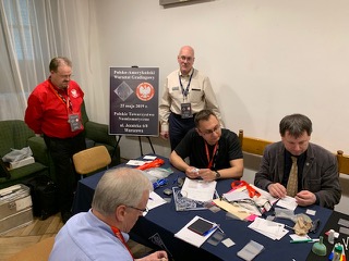 On Saturday May 25, 2019 for the first time in Poland and only the second time in Europe, a coin grading class based on NGC grading standards was held. The seminar was jointly hosted by the Michigan based PANS and PTN of Warsaw, Poland.The nine students now are the core of modern coin grading, conservation and storage knowledge in Poland and they will be sharing what they learned in their local organizations.The lead instructor was ANA past president Bob Campbell from Salt Lake City, Utah who was named an NGC Numismatic Ambassador in honor of the occasion.Supporting Bob as assistant instructors were PANS president Lester Rosik that also acted as the Polish Translator, CSNS vice president and PANS treasurer Brett Irick and PANS past Secretary Joe Beaupied. The students included PTN president Przemysław Ziemba and PTN Treasurer Szymon Bereska.According to PANS president Les Rosik, “the seminar idea came from a 2016 discussion with Szymon Bereska about modern coin grading standards on the 1-70 Sheldon scale that was held in the back room of a Warsaw coin dealer during a ten-day numismatic tour of Poland.”In Poland, the traditional 1-5 grading scale is still used that has large steps between grades that can make coins hard to value or compare without viewing in person. PANS and PTN worked together to organize the event that financial support from PANS and PTN.PANS founding member, Les Rosik, also noted that when the PANS society was formed in 1981 “we wrote into our constitution that we would support the development of Numismatics in Poland.” And, that “nearly forty years of hard work were required to develop our 100+ table semi-annual international and regional coin shows in Troy, Michigan, USA. And, that these shows generated the money that made this and future events with the PTN possible.”Thanks go out the sponsors of this event.In the United States,The Polish American Numismatic Society,NGC Numismatic Ambassador, All About Coins dealer and owner Bob CampbellThe Numismatic Guarantee Corporation, and president, Mark Salzberg.In Poland,The Polskie Towarzystwo Numizmatyczne, and PTN president Przemysław ZiembaPTN treasurer Szymon Bereska.Gabinet Numizmatyczny, Auction House Owned by Damian Marciniak in Warsaw, Poland.Also thanked for inviting the instructors and their guests to an outstanding dinner buffet at the Mariott, downtown Warsaw, Poland after the seminar that was held in conjunction with a numismatic auction.Antykwariat Numizmatyczny – Michal Niemczyk, Auction House in Warsaw, Poland.PANS is an RCNA member club.PhotosBob Campbell and Les Rosik Bob Campbell is on left sidePANS PTN Class Room ScenePANS PTN Seminar Attendees